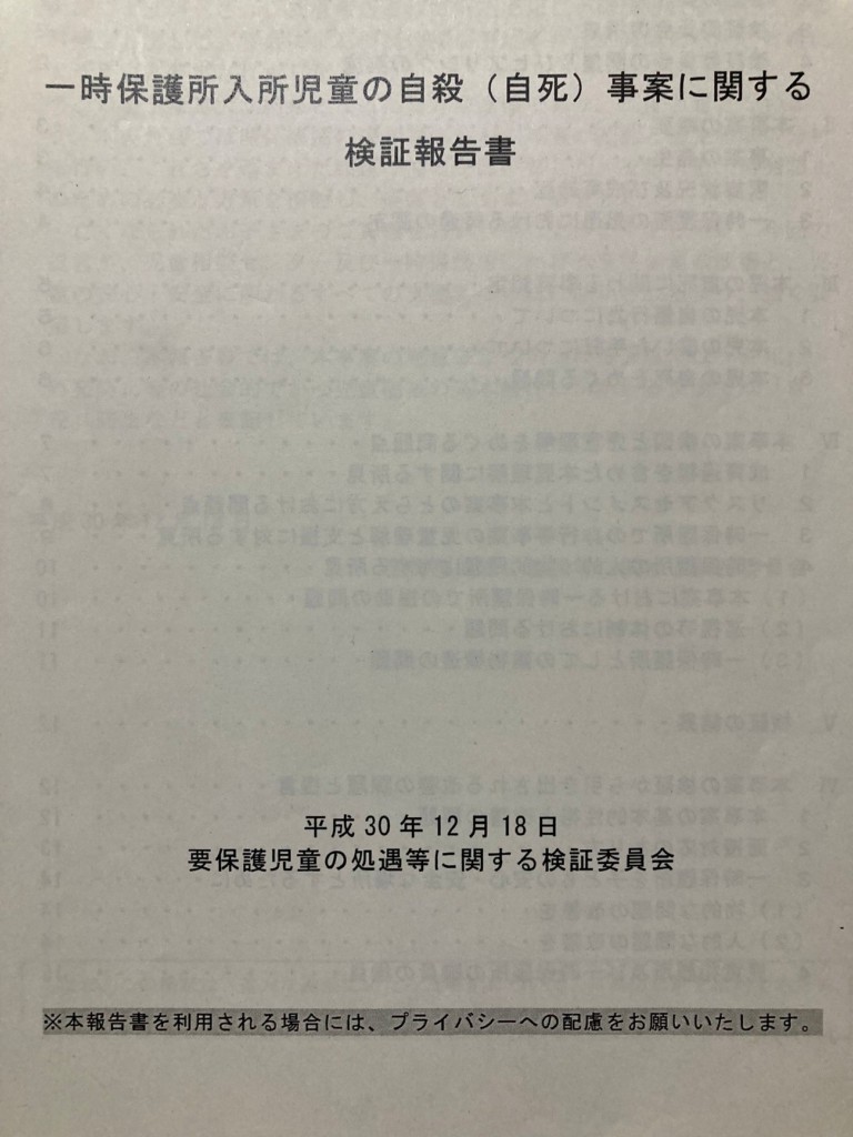 三河の一時保護所では、2018年1月23日、保護していた16歳の児童が入所13日後に自殺をしたという痛ましい事故が起こりました。その後、2018年12月18日に示された「愛知県一時保護所入所児童の自殺事案に関する検証報告書